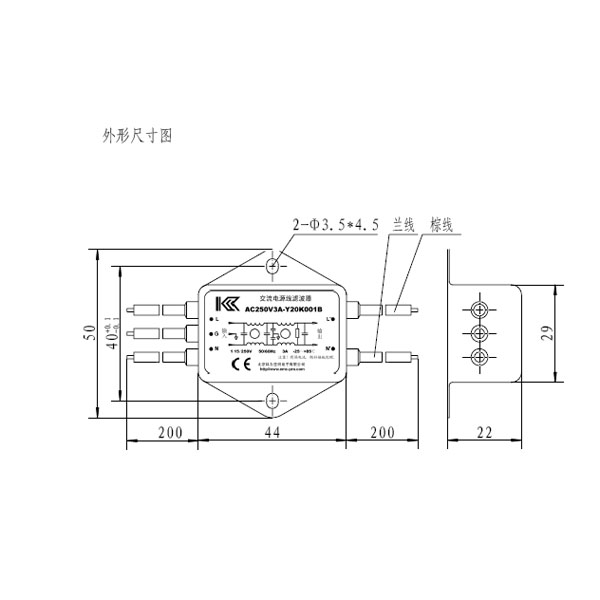 AC250V3A-Y20K001B 交流单相、双共模滤波-Y2系列
