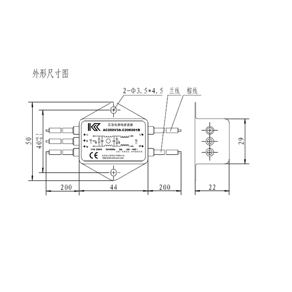 AC250V3A-C20K001B 交流单相、增强差模干扰抑制-C2系列