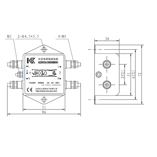 AC250V3A-C30K008BD001 交流单相、双共模+差模,高性能-C3系列