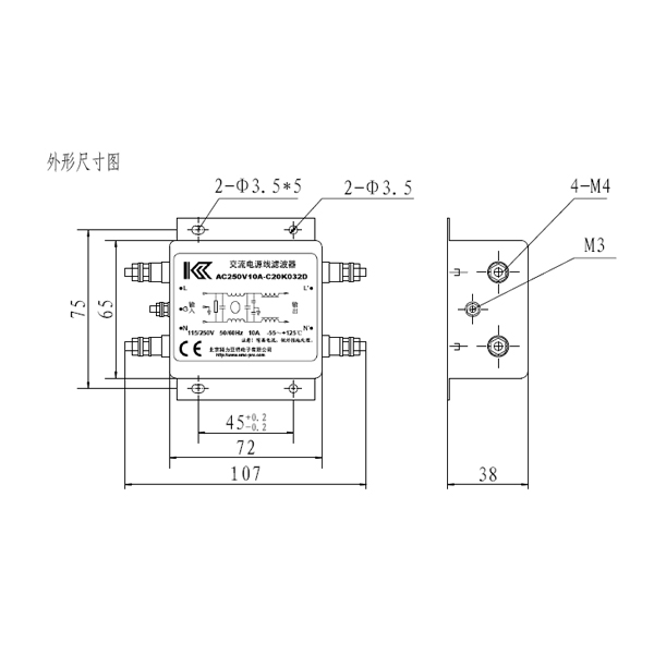 AC250V10A-C20K032D 交流单相、增强差模干扰抑制-C2系列